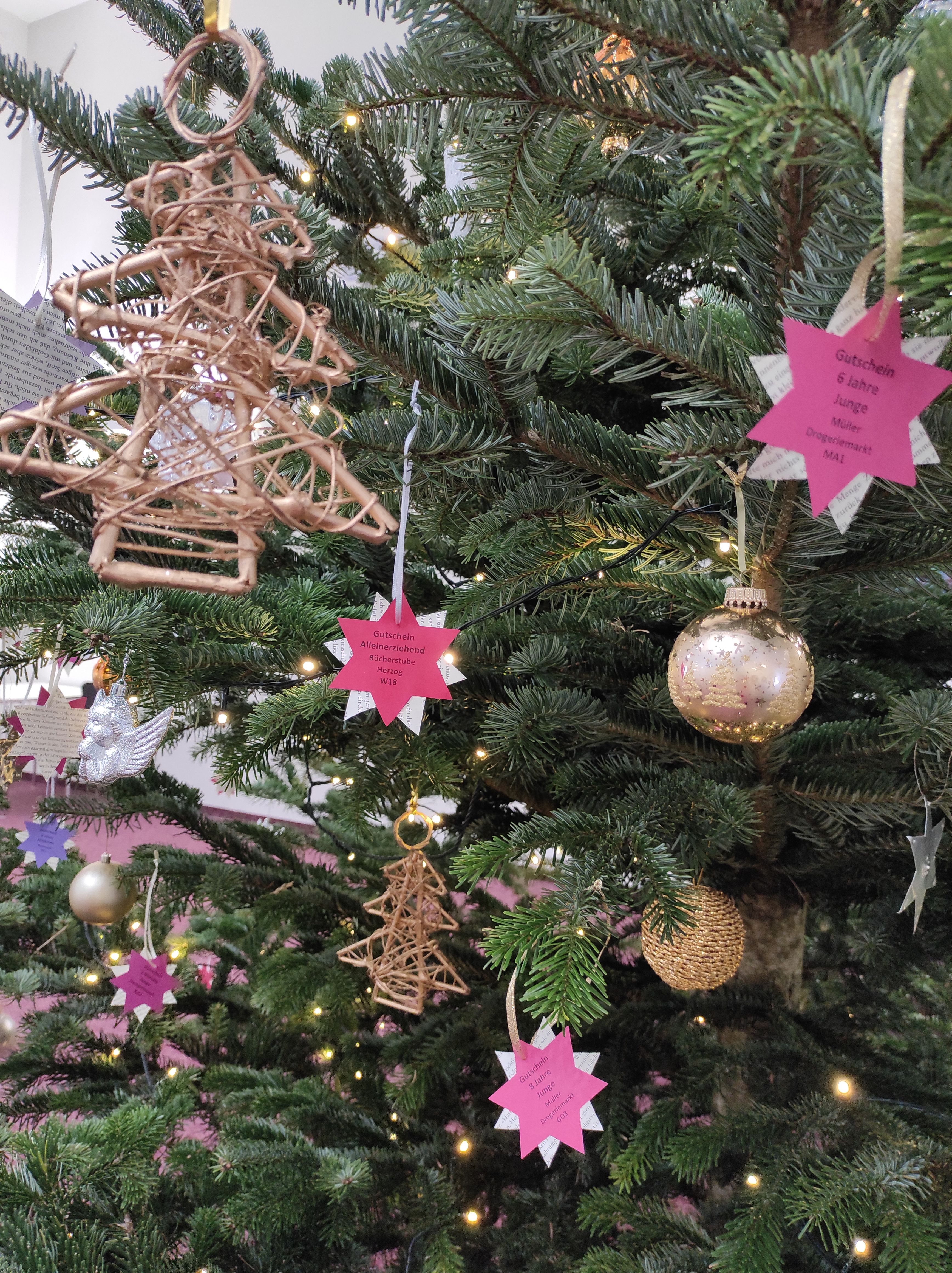 Auch dieses Jahr gibt es in der Adventszeit voraussichtlich ab Freitag, den 28. November 2025 wieder Wunschzettel am Christbaum in der Bücherei zum Mitnehmen. Die Wunschzettel stehen für Gutscheine verschiedener Geschäfte in Grafing und Ebersberg. Neben den Gutscheinen für Kinder haben wir auch für die Senioren der Grafinger Tafel Gutscheinwünsche (Wert jeweils bis € 25), die Sie erfüllen dürfen.