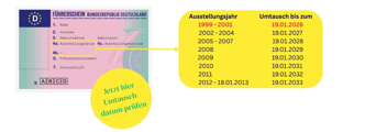 Das Umtauschdatum hängt allerdings vom Ausstellungsjahr Ihres Führerscheins ab.