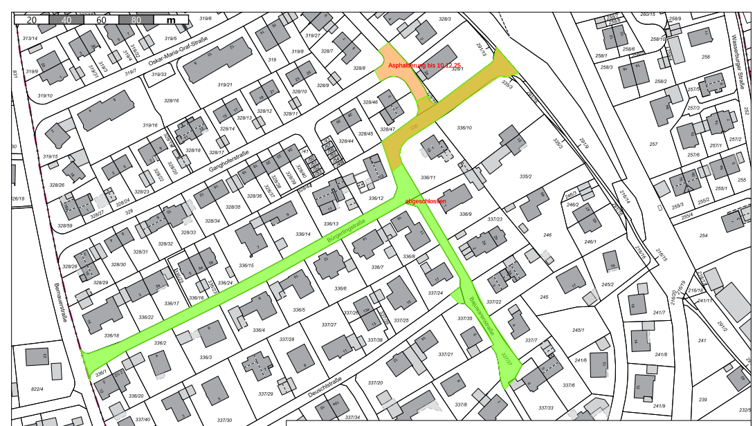 Es ist geplant die Asphaltierungsarbeiten (inkl. Gehwege) bis zum 10.12.25 abzuschließen.