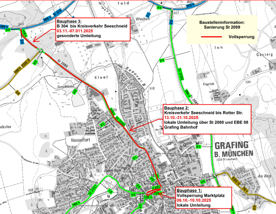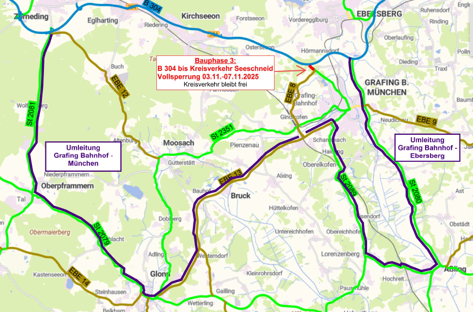 Umleitungen und Halteausfälle - ab 13.10.25 - 31.10.25 Kreisverkehr Seeschneid und Kreisel Seeschneid bis zur B 304 vom 03. - 07.11.25